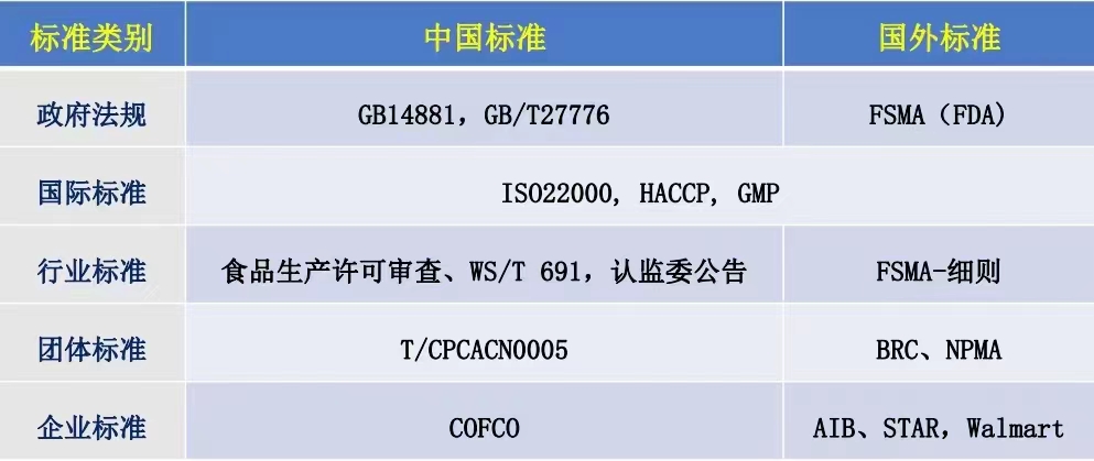 食品企業(yè)常見的審計(jì)標(biāo)準(zhǔn)有AIB、STAR,Walmart,BRC、NPMA、ISO22000、FSSC22000、GB14881.GB/T27776,HACCP,GMP,食品生產(chǎn)許可審查、WS/T 691、認(rèn)監(jiān)會公告,T/CPCACN005\COFCO等,我們評估體系在行業(yè)成為審計(jì)標(biāo)準(zhǔn)之一。審核標(biāo)準(zhǔn)得到了消費(fèi)者及北美食品零售商的廣泛認(rèn)可,進(jìn)而被許多全求食品零售商和采購集團(tuán)用來作為對供應(yīng)商實(shí)施準(zhǔn)入的一道門檻。